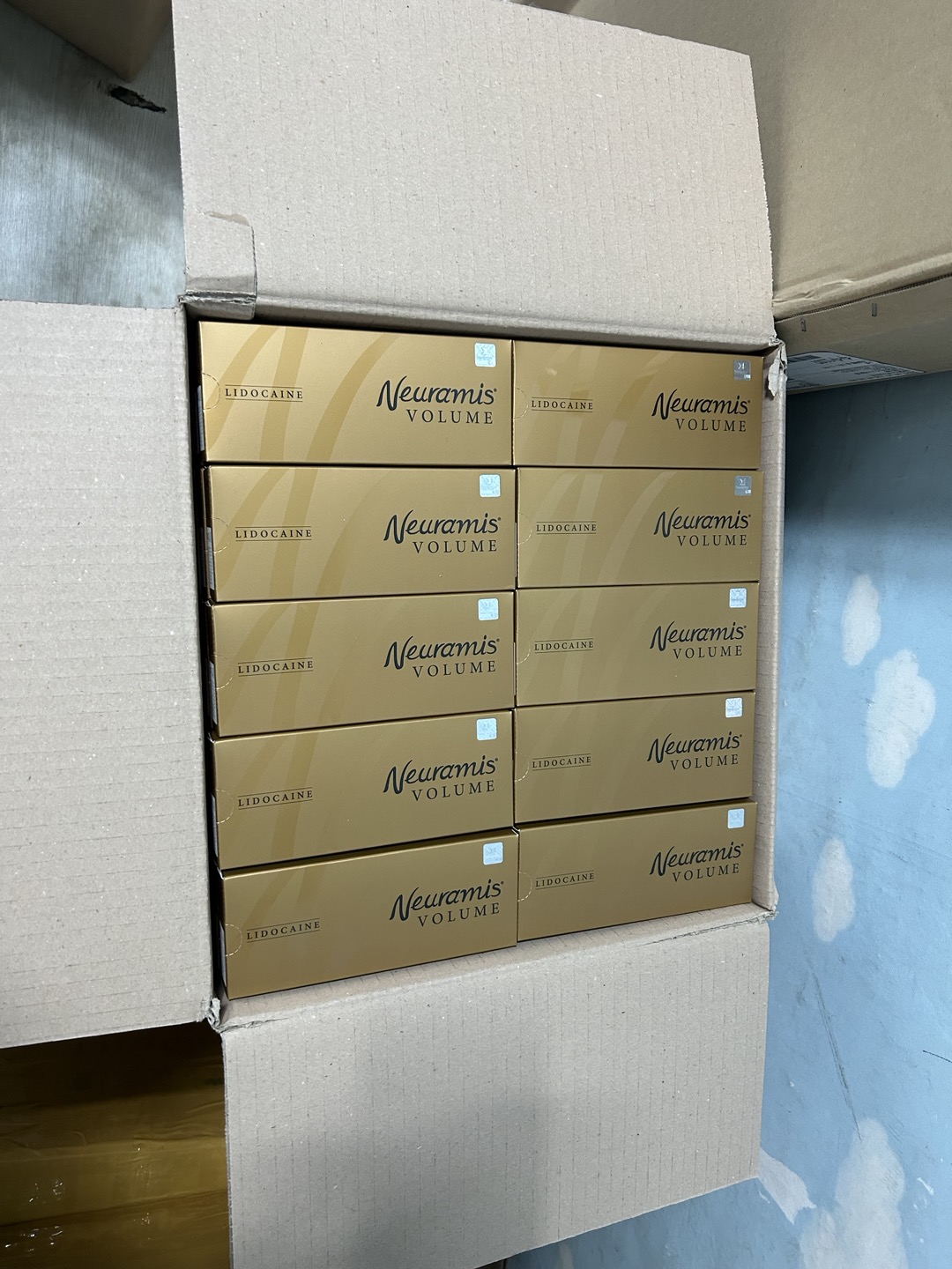 - Neuramis Volume (Phân tử hạt HA lớn): Hộp màu vàng, có tác dụng làm đầy vòng lõm như má, cằm, trán,…tăng khả năng làm đầy, dưỡng ẩm cho da.